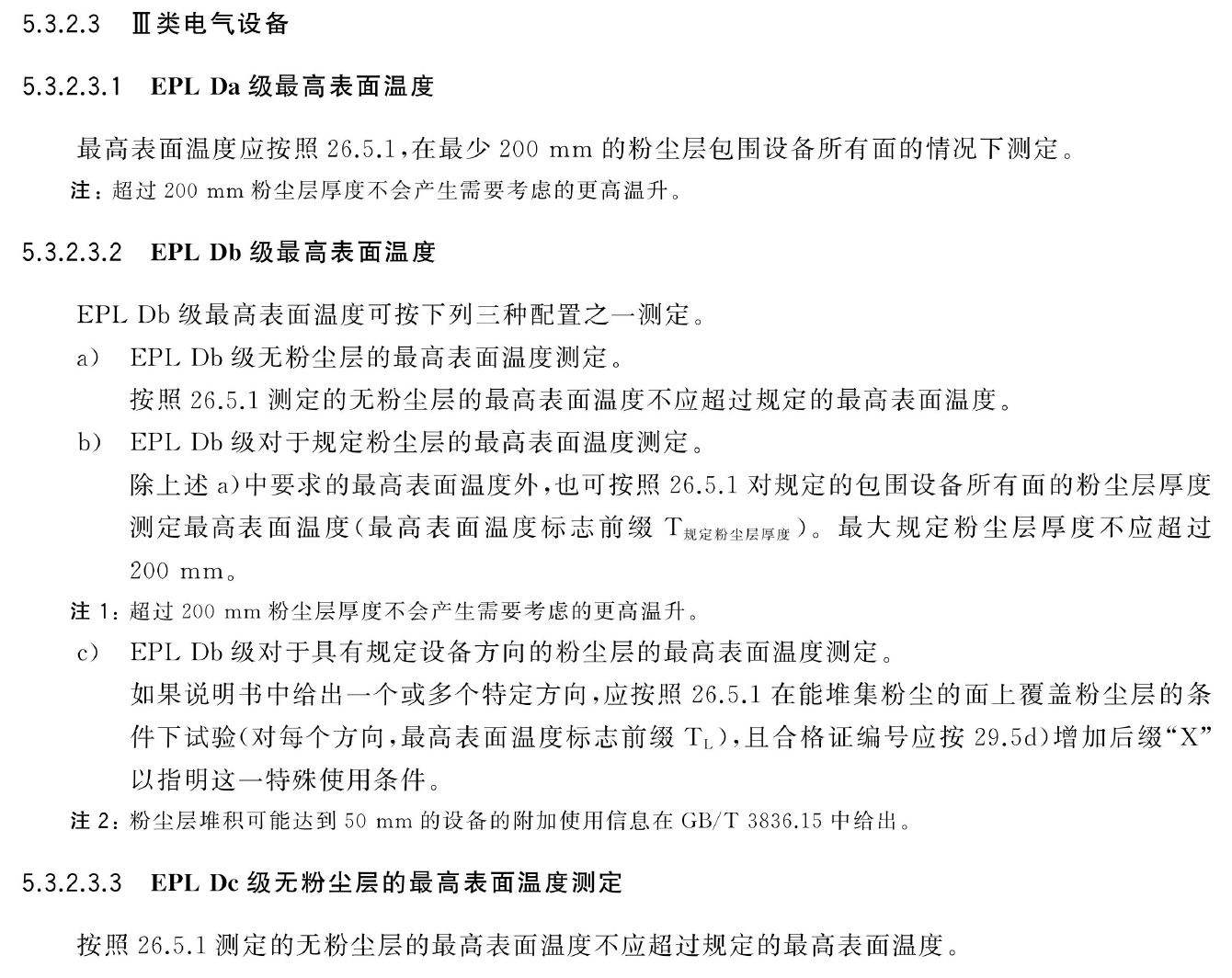 T 20080°C:The maximum surface temperature of the equipment under the condition of 200mm dust cloud shall not exceed 80 ° C